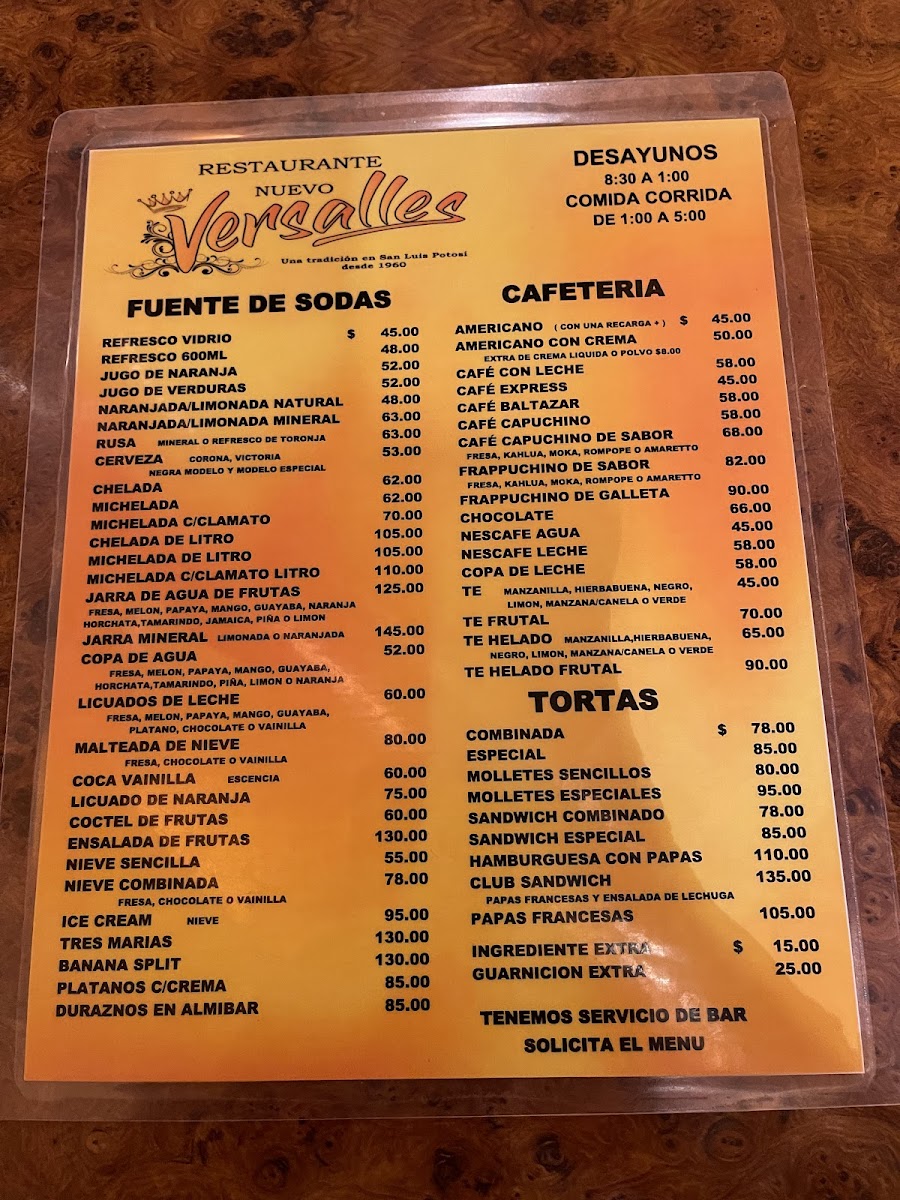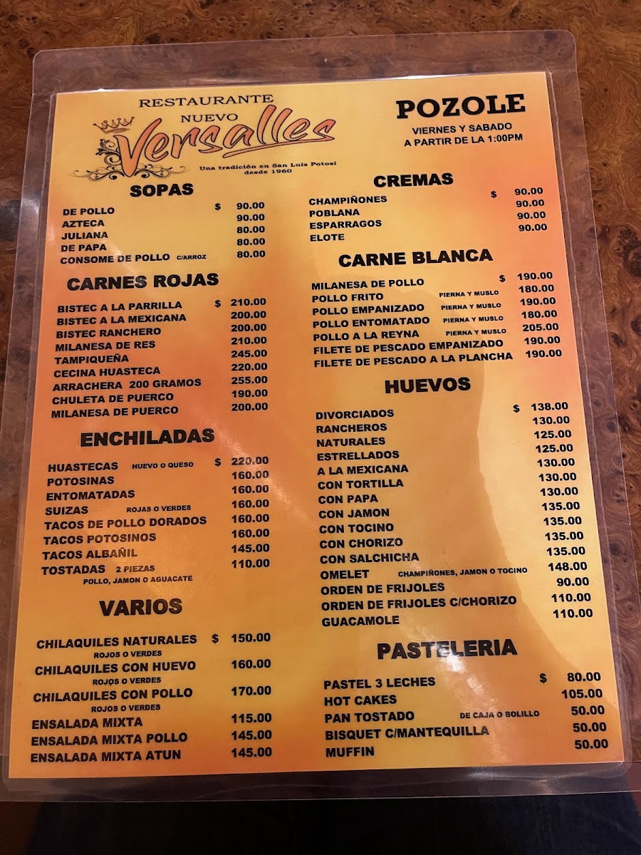 Introducing the Menu at Restaurant Nuevo Versalles
